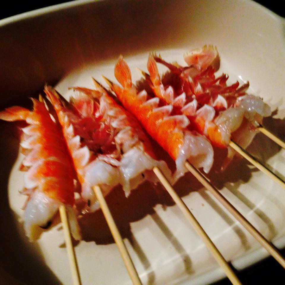 Pulire gli scampi, inserirvi dei lunghi stecchi. Portare a ebollizione l’acqua e cuocere gli scampi con il carapace.