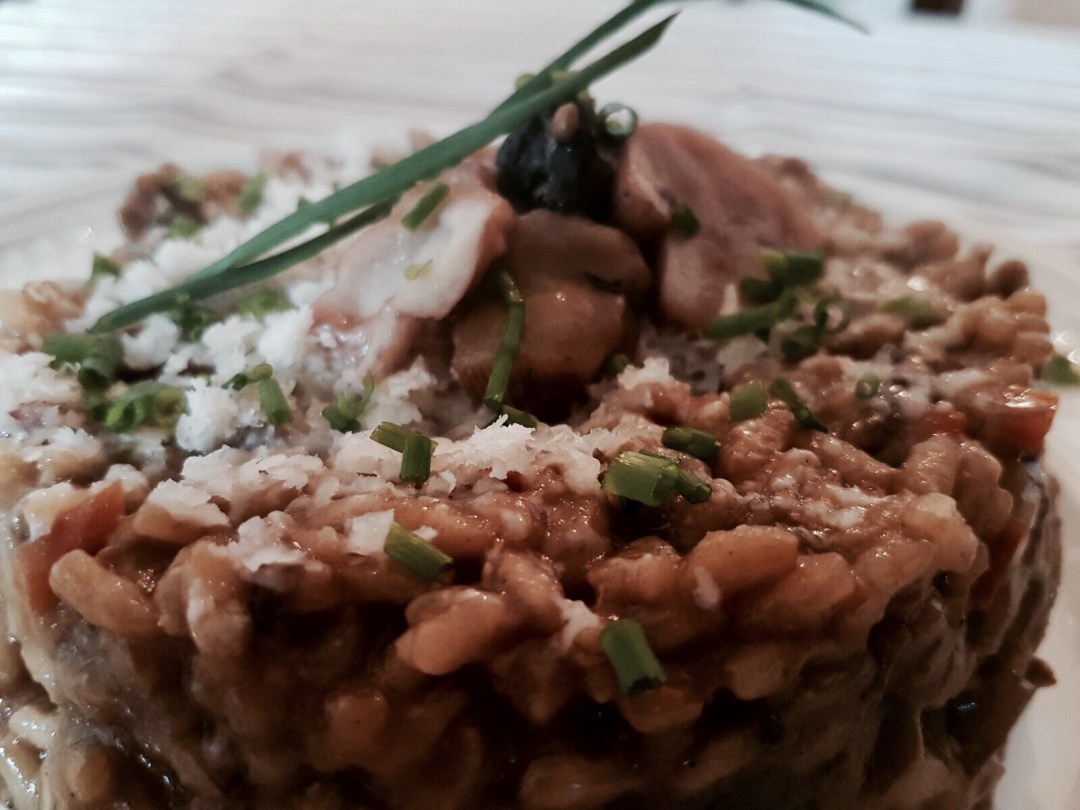 Il risultato è un risotto cremoso ma leggero, grazie al brodo vegetale, dall’inconsueto colore scuro molto aromatico. All’assaggio le verdure dovranno risultare leggermente croccanti, mentre i funghi cremosi. Il gusto con una punta dolce, esalta il retrogusto più amarognolo del porcino.