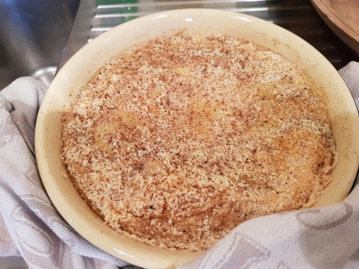Occorrono patate, un rosso d’uovo, parmigiano grattugiato, pan grattato, sale, burro, olio evo, noce moscata e pepe nero al mulino. Per la farcitura ho scelto prosciutto cotto e un formaggio francese a pasta molle come il Caprice de Dieux.