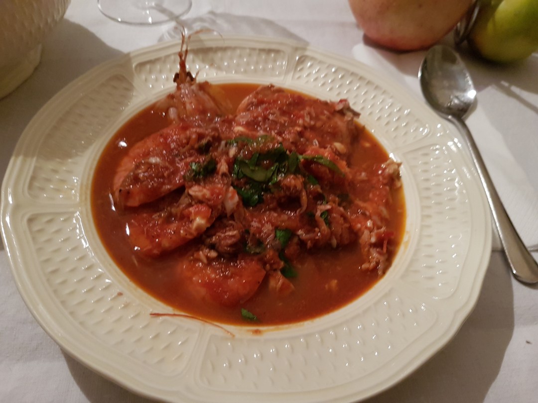 La mia è cucinata direttamente nella salsa di pomodoro, ovviamente scelgo R02, la passata salentina di mia produzione. La preparo in due momenti. Il giorno prima cucino un cuore di merluzzo nella salsa, senza aggiungere alcun condimento. Il merluzzo può essere anche consumato a parte, ma rilascerà nella salsa gusto e profumo. Il giorno dopo aggiungo coda di rospo, gallinella, gamberi, moscardini e canocchie. Lascio sobbollire per almeno 30 minuti. Serve anche prezzemolo per guarnire.