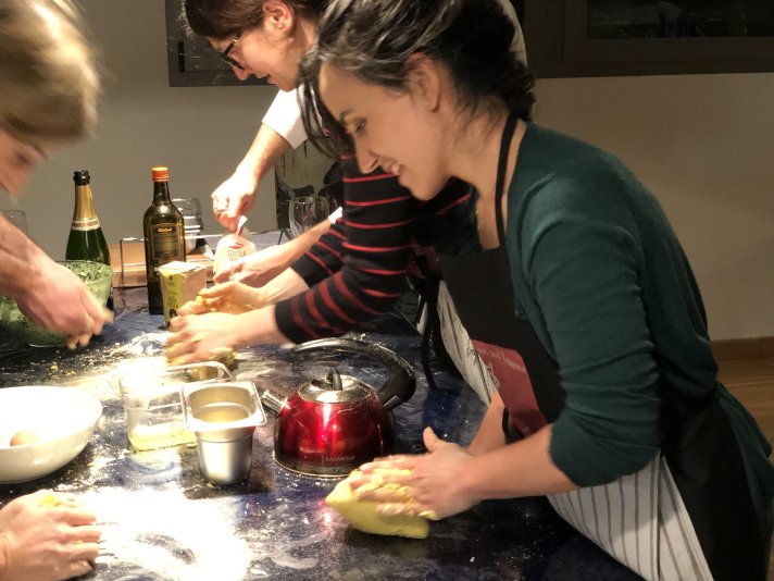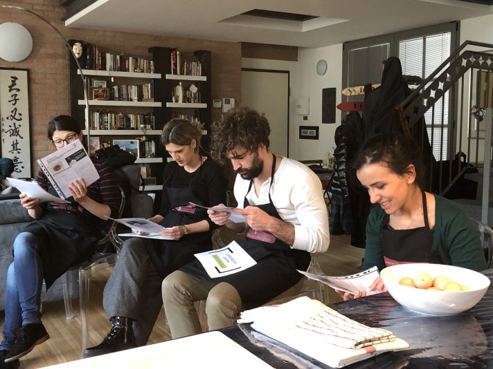 Con il gruppo abbiamo cucinato, poi abbiamo parlato di cibo, di spesa, dei coltelli e di come usarli, di ricette, di spesa e materie prime e anche di come evitare lo spreco. E poi abbiamo anche cenato insieme.