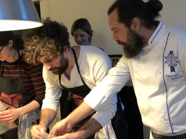 Cucinando si fa squadra. Talvolta si riconoscono affinità elettive insospettate e, altre volte, si scopre perfino di avere una vocazione da leader, rimasta nell’ombra. Lo ha capito il dottor Hayato Kurihara, che ha deciso di regalare alla sua equipe un pomeriggio in cucina con me. L’idea nasce da tante conversazioni, in cui abbiamo sempre notato come esista una somiglianza operativa tra cucine professionali e sala operatoria. Sembra, forse, l’estremizzazione di un’idea un tantino splatter, ma a pensarci, in termini pratici, la forma mentis non è poi così distante. Cosa serve, in cucina, per portare a termine un servizio impeccabile? Chiarezza nei ruoli, che ogni operatore assolva al proprio compito, nei tempi e nei modi previsti, attenzione alta, comunicazione precisa e tempestiva e, quindi, gioco di squadra collaudato, il tutto con una figura leader, riconosciuta, che coordini le attività, nel caos inenarrabile dell’ora di punta, con lo stress che ti pungola.