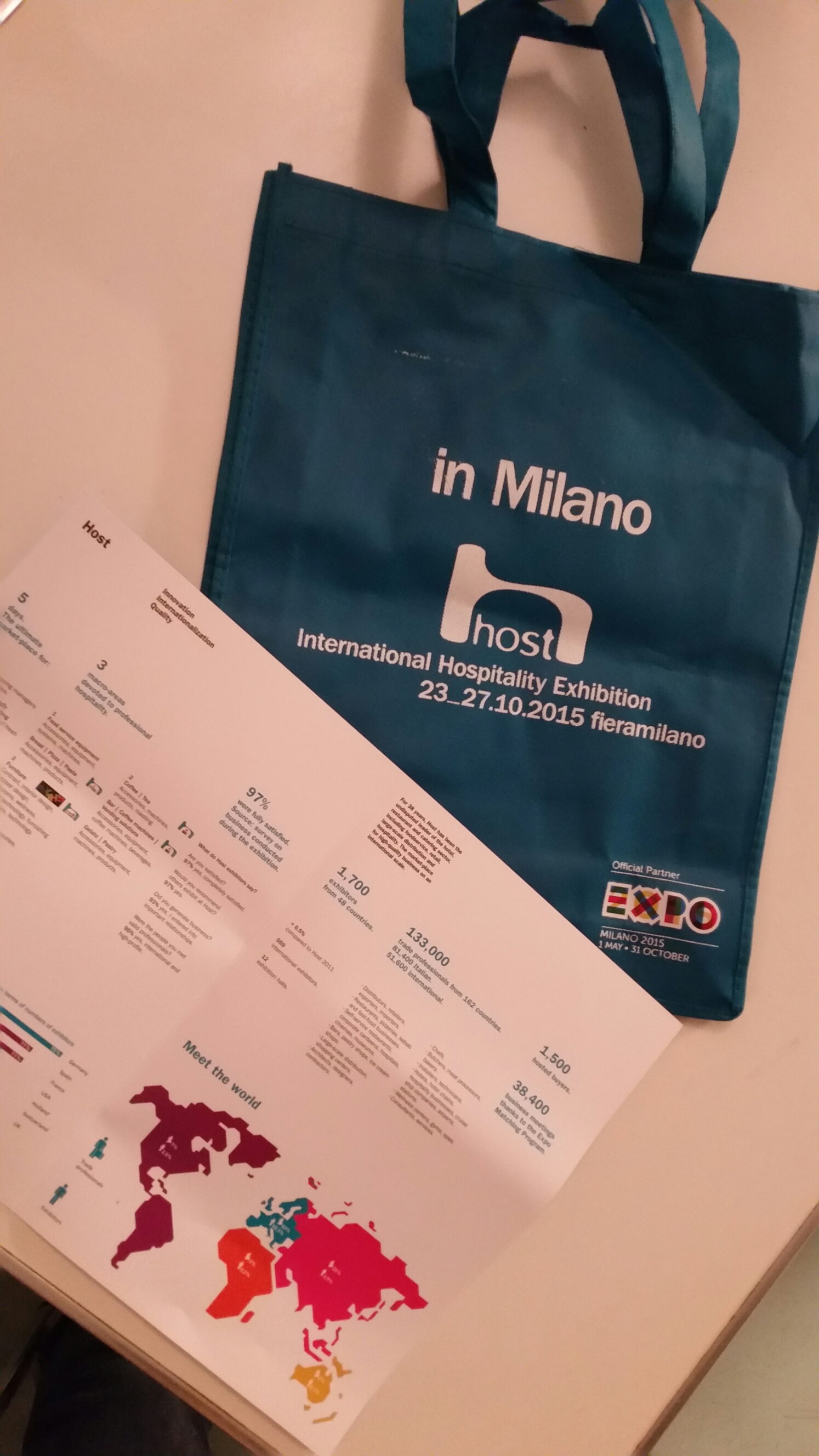 Questa è la prima volta in cui visito una fiera anche con la veste del blogger e non solo come utente professionale o lavorando per qualche cliente. E’ nato tutto da un incontro casuale, da un invito a visitare uno stand. Ho deciso di provare ad accreditarmi come blogger, visto che ho festeggiato ormai un anno di storie del mio lavoro con il mio blog Fabrizio Sansoni – una barba in cucina. Ho mandato la richiesta all’ufficio stampa di HOST, pur sapendo che i dati del mio blog non sono da influencer, però c’è dentro la mia vita e le mie esperienze. Sembra che abbia funzionato. Dopo poche ore avevo l’accredito nella casella mail. Fa quasi sorridere, ma un po’ mi ha emozionato.