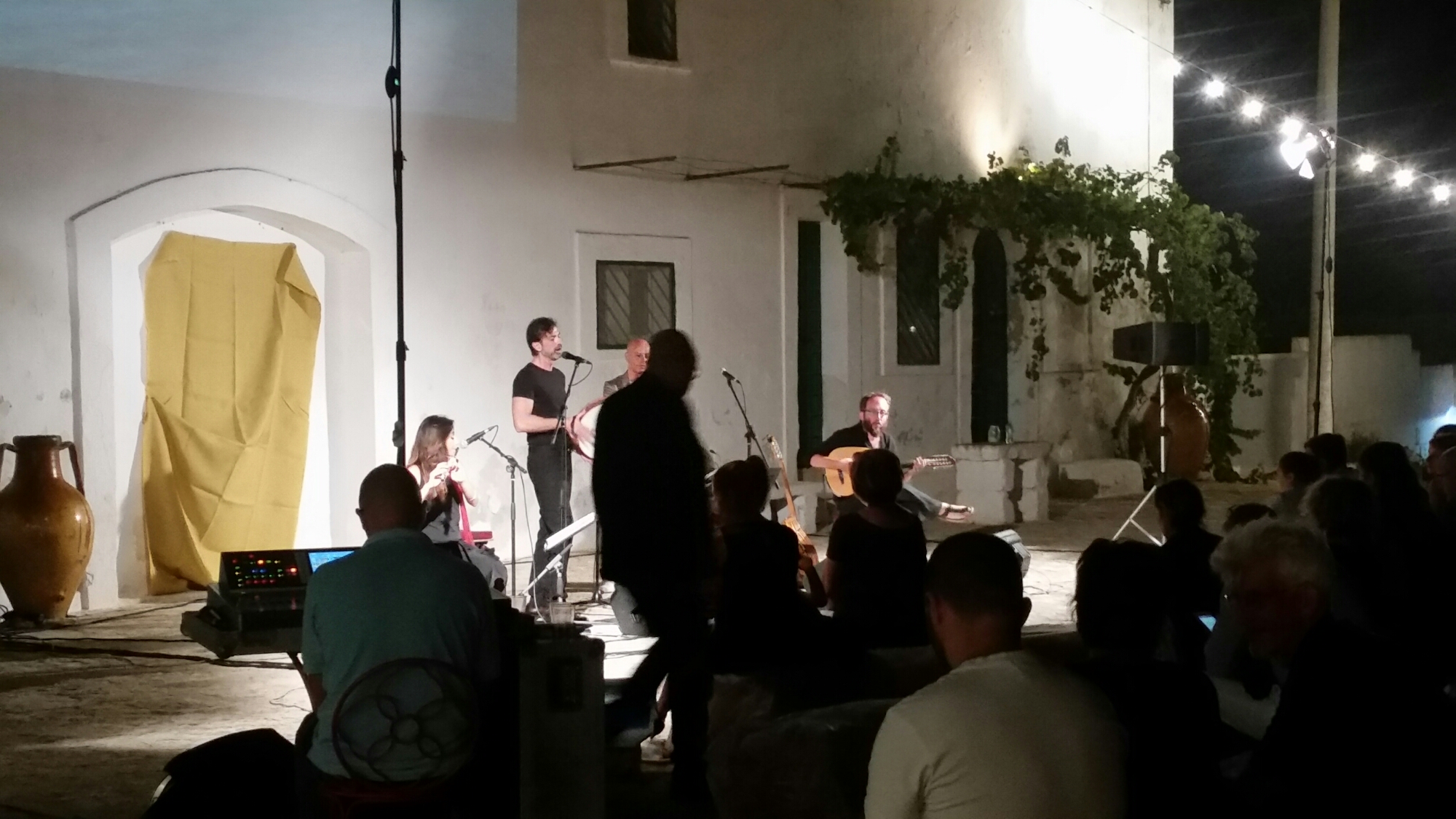 Invito in strepitosa location ieri sera in zona Speziale. Si festeggia la presentazione del Cd dei Cantiga de la Serena, band che musica sefardita, di ricerca, scritta e cantata in ladino. Per l’occasione Nabil Bey dei Radioervish ha prestato la propria voce. L’evento si tiene a Ottava Bianca, una masseria di un architetto milanese, che ha deciso di stabilirsi in Puglia con vita e lavoro al seguito. La masseria è in fase di avanzato restauro. Cena di grande semplicità, con prodotti tipici del territorio, orecchiette, pizze ripiene, latticini e dolci, Negramaro fresco e rosolio di carrube a pioggia. E la serata si conclude con il concerto aperto da un pezzo dal titolo “Serena”, presentato dalle parole di Nino Piccolo, padrone di casa e Anfitrione.